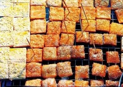 10、青岩豆腐青岩豆腐是一种贵阳市的地方传统名小吃,是把豆腐放在火上烤,在火上把豆腐烤成两面黄、再浇上些调料,吃了来特别爽口,与四川的味道不同,辣味少了点,但也别有一番风