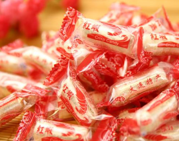 第三种:龙虾酥糖,在80后小时候,根本没有什么糖果吃,种类很少,当时最火的就是龙虾酥糖。在他们小时候,平时都吃不到龙虾酥糖,只有在过年,或者是有人结婚的婚礼上,才可能吃上这种糖。吃起来有淡淡的花生香,因为它制作食材中,就包含花生。